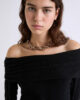 Najbolj kul zimski stil boža kožo: oblecite si ta puhast pulover z bleščečimi mikro bleščicami. Ovratnik razkrije ramena in obda s čutnostjo.