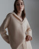 - Raglan rokavi in rebrasti pleteni detajli na ovratniku in obrobah