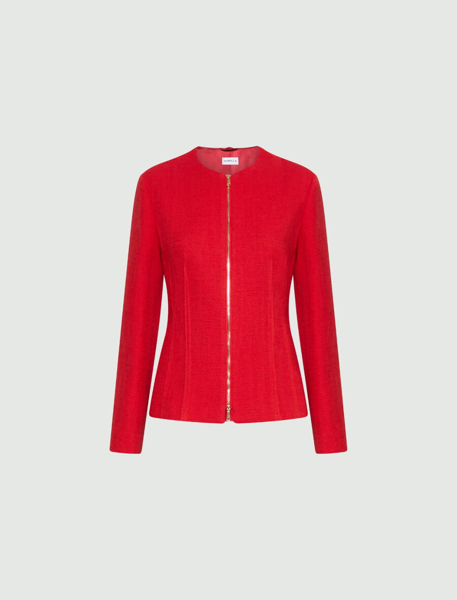 Raztegljiva tkanina, ki spodbuja gibanje, in dizajn, ki definira silhueto: ta nova jakna iz pletenega materiala združuje prefinjen čar z vso praktičnostjo, ki jo potrebujete za današnje mestne aktivnosti.
