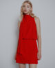 Ta razširjena satenasta obleka envers izžareva nove vibracije in kanček glamurja. Pas okoli vratu in učinek bluzona v pasu se ponašata z privlačnostjo, ki spominja na osemdeseta leta in združuje ženstvenost z lahkotnostjo.