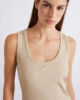 Ta oprijet top iz viskoznega džersija se ponaša z drobnim rebrastim vzorcem za 3D učinek. Model brez rokavov nosite z vašim najljubšim suknjičem in kavbojkami za ležerno, a hkrati mestno elegantno kombinacijo.