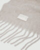 Ta topel in ovijajoč šal iz volne in alpake se odlično poda k puloverjem in plaščem iz kolekcije. Dopolnjen je z resicami in etiketo blagovne znamke.