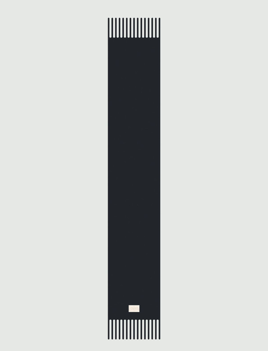 Ta topel in ovijajoč šal iz volne in alpake se odlično poda k puloverjem in plaščem iz kolekcije. Dopolnjen je z resicami in etiketo blagovne znamke.
