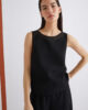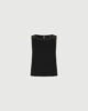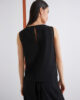 Izrez in odprtine za roke tega ženstvenega kroja brez rokavov so okrašeni s čutno aplikacijo iz žoržeta. Prefinjena mešanica materialov, ki jo lahko nosite z dolgimi hlačami ali vašimi najljubšimi kavbojkami.