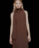 Ta dolga in padajoča satenasta obleka envers bo postala izjemen kos oblačila za posebne priložnosti, zahvaljujoč svojemu osnovnemu kroju in pasu okoli vratu, ki ga lahko poljubno zavežete. Za brezkompromisno elegantno obleko dodajte torbico in sandale.