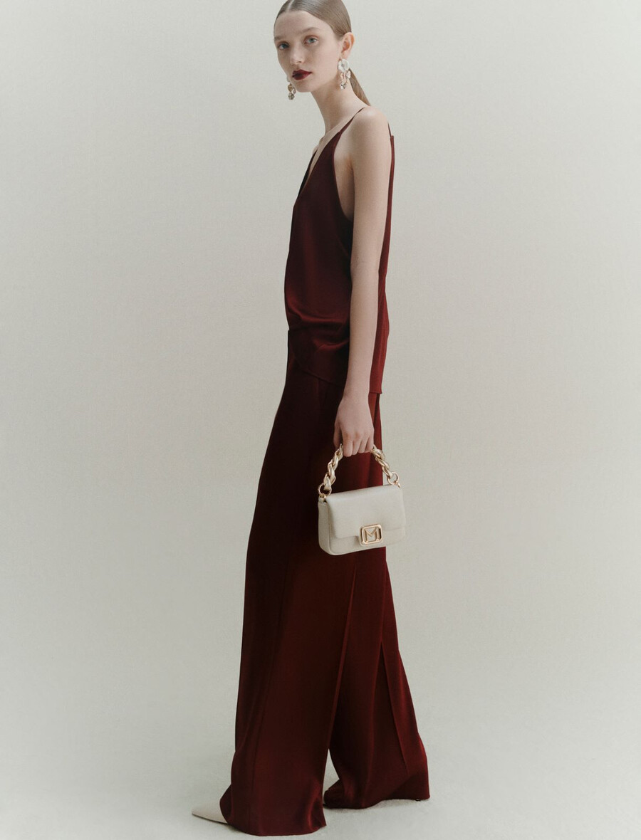 Zasnovane za najbolj elegantne priložnosti: te oprijete satenaste hlače se zibljejo z vsakim vašim gibom in pri tem harmonično bleščijo. Model kombinirajte z ujemajočim se zgornjim delom za dnevno-večerno kombinacijo.