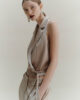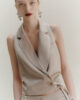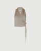 Ultra eleganten ovratnik in ženstven križni dizajn: ta novi model brezrokavnika ima vse. Izdelan je iz sijoče satenaste tkanine za eleganten videz tudi v najbolj nonšalantni situaciji.