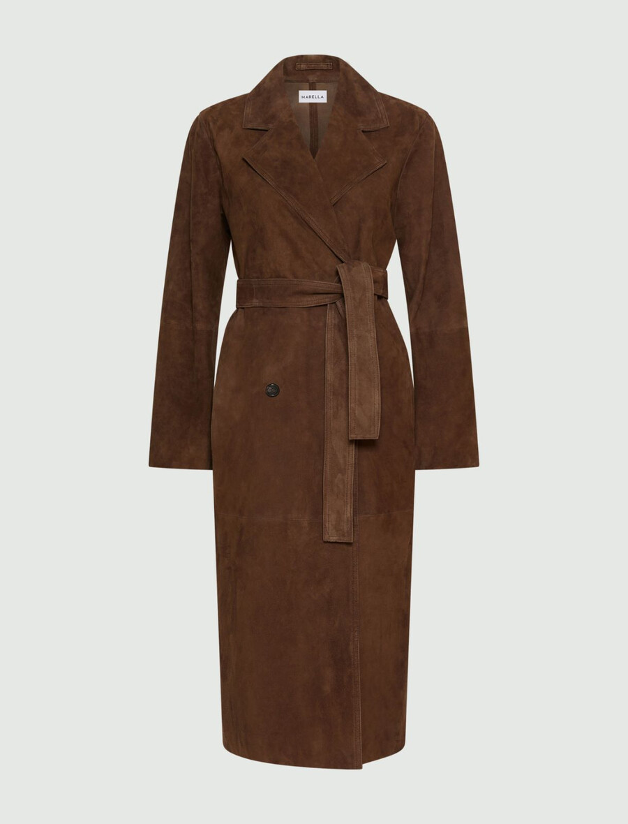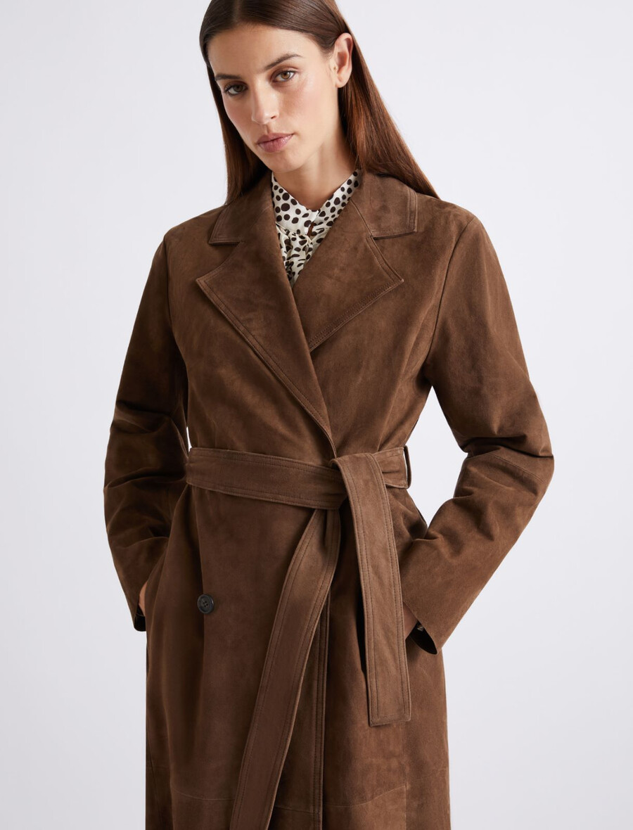 - Dvoredni trench plašč iz semiša