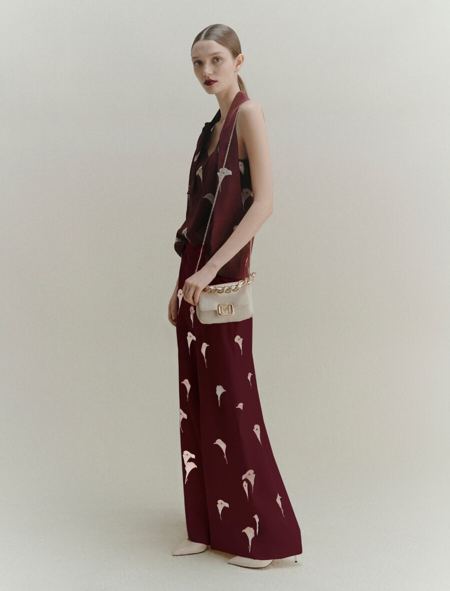 Upor je zaman, ko gre za te privlačne hlače iz voile: širok, valovit model je okrašen z nežnim vzorcem, ki v oblaku barv spominja na organske oblike. Model kombinirajte z ujemajočim se zgornjim delom za poseben videz, pripravljen na odhod.