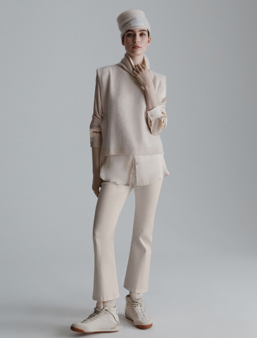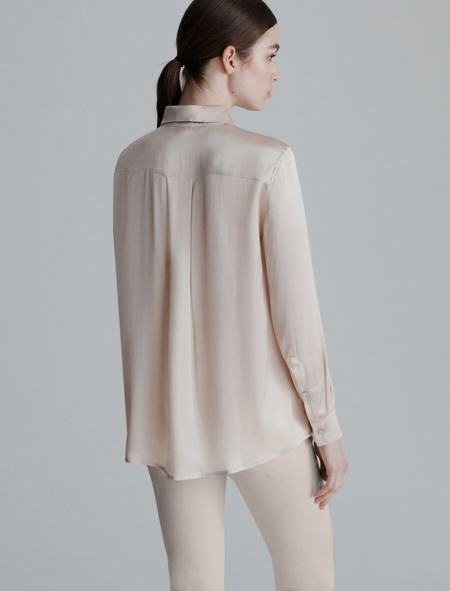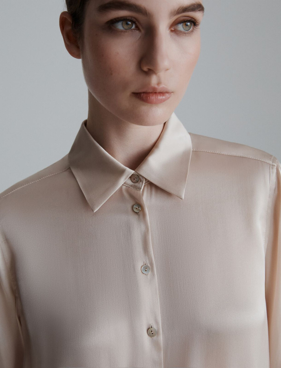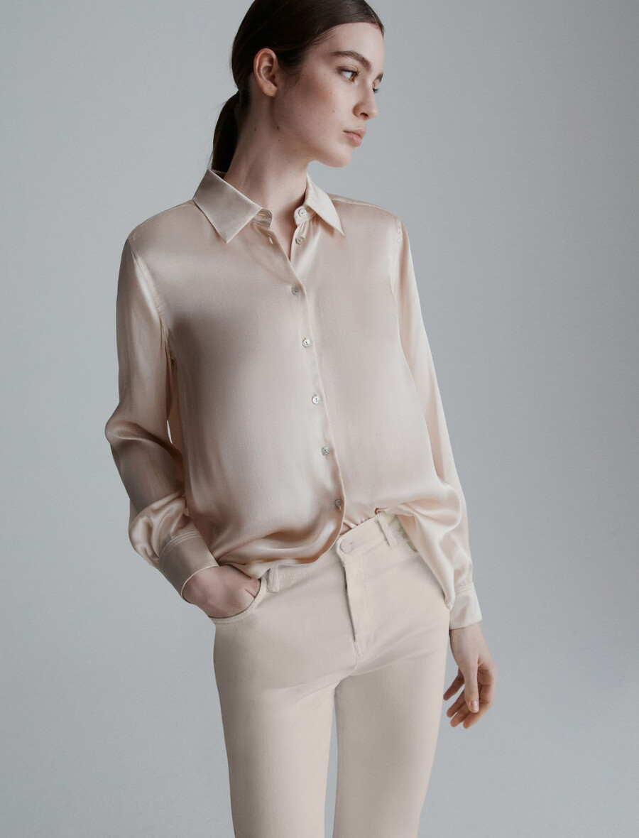 Srajca iz satenaste mešanice svile – KREMNA