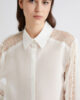 Majhni razkošni detajli spremenijo to srajco v poetični top: čipkasti intarzije na rokavih ustvarjajo subtilen prosojen učinek, zaradi česar je oblačilo popolno za bolj ženstvene obleke.