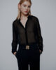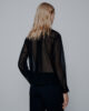 Sodobna različica klasične moške srajce, izdelane iz tkanine žoržet za sezonsko eleganco. Osnovni kroj poudarjajo manšetni gumbi, okrašeni z dragulji, ki dodajo sijoč pridih.