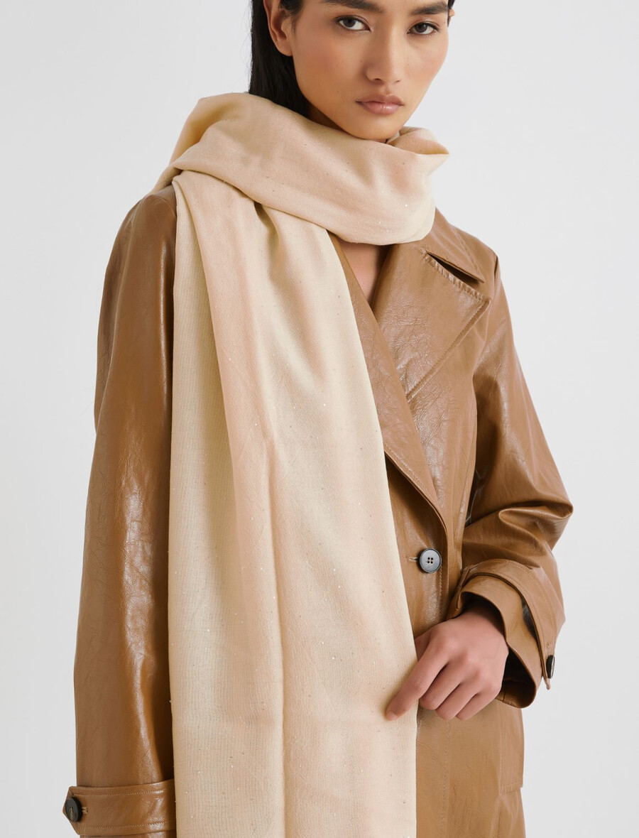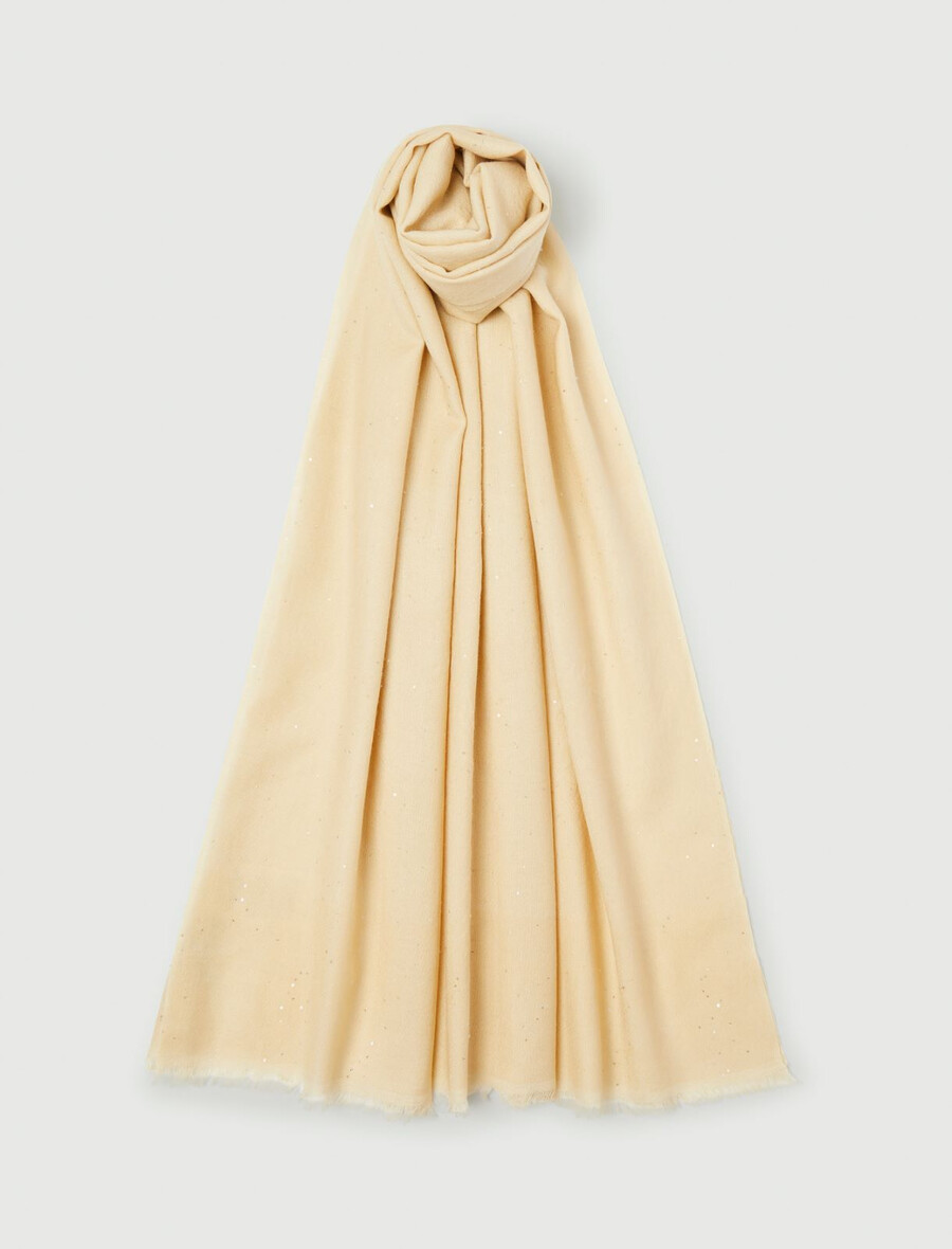 Prepojena z zvezdami za podnevi in ponoči: nova volnena štola z všitimi mikro bleščicami. Blešči se na soncu in jo lahko nosite z blazerji in vsakodnevnimi puloverji.
