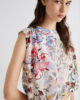 Ta lahka satenasta bluza je okrašena z nežnim grafičnim vzorcem. Nosite jo pod suknjičem, s krojenimi hlačami ali celo s preprostimi chino hlačami in sandali za bolj lahkoten šik stil.