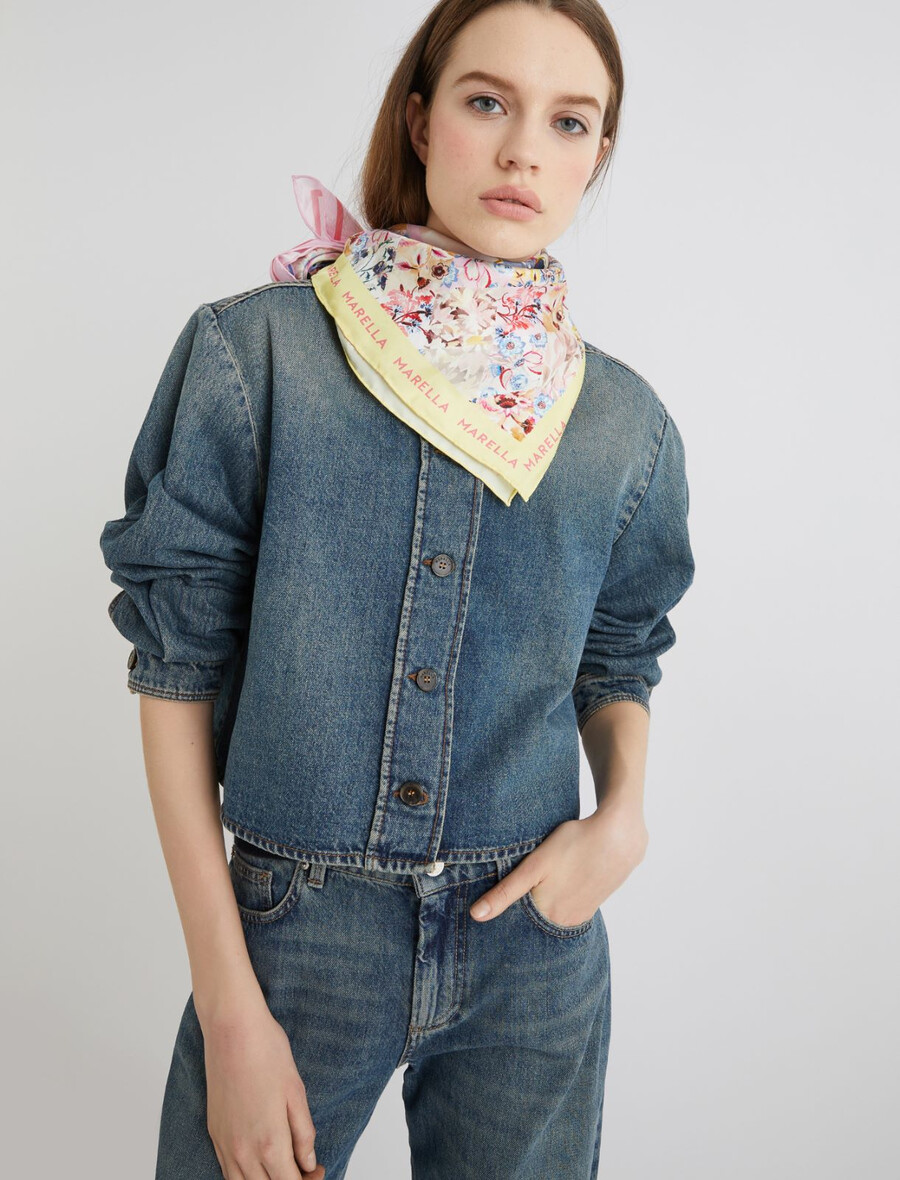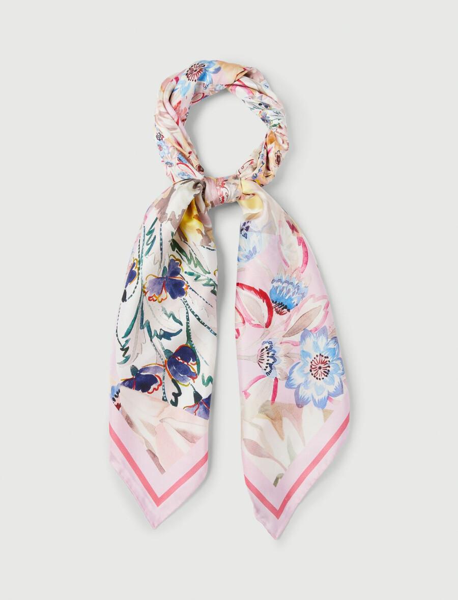 Geometrijske oblike in obilica rož: ta nova ruta združuje novo urbano ženstvenost v živahni grafiki. Dodatek, ki presega sezono, je izdelan iz čiste svile.