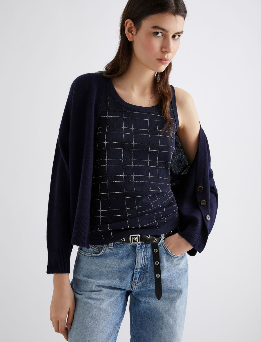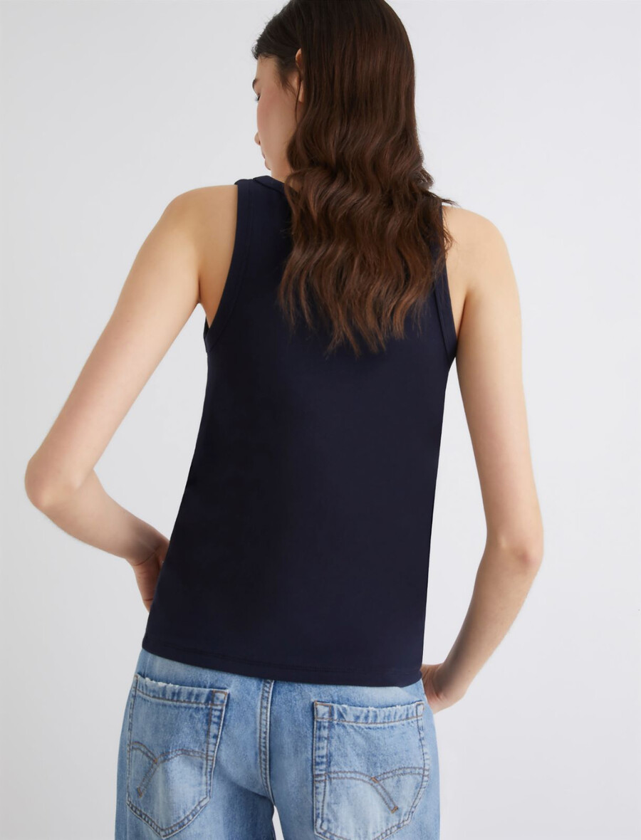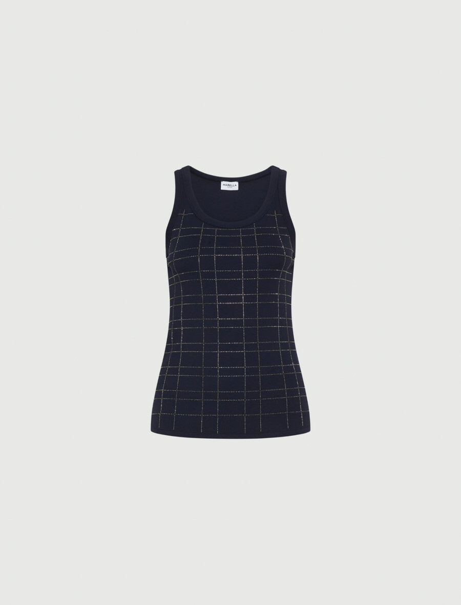 Top brez rokavov z okrasnimi kamni – TEMNO MODER