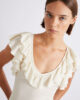 Ta ultra ženstvena majica brez rokavov se ponaša z izrezom in nabranimi detajli, ki poudarjajo ramena. Dodajte kavbojke in balerinke za enostavno šik obleko, ki jo boste lahko ponovili znova in znova.