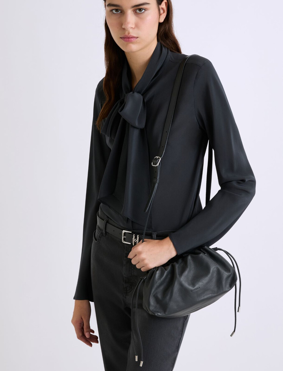 To nestrukturirano torbo iz napa usnja odlikujejo subtilni nabrani detajli. Strojenje brez kovine priča o Marellini posebni skrbi za okolje.