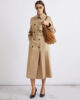 Ta brezčasen in samemu sebi zvest trenčkot je nedvomno izjavljiv kos sodobne ženske mode. Brezčasen ženstven kroj in dvojno zapenjanje vzbujata vohunjenje in zapeljivost.