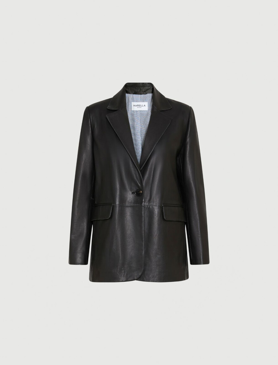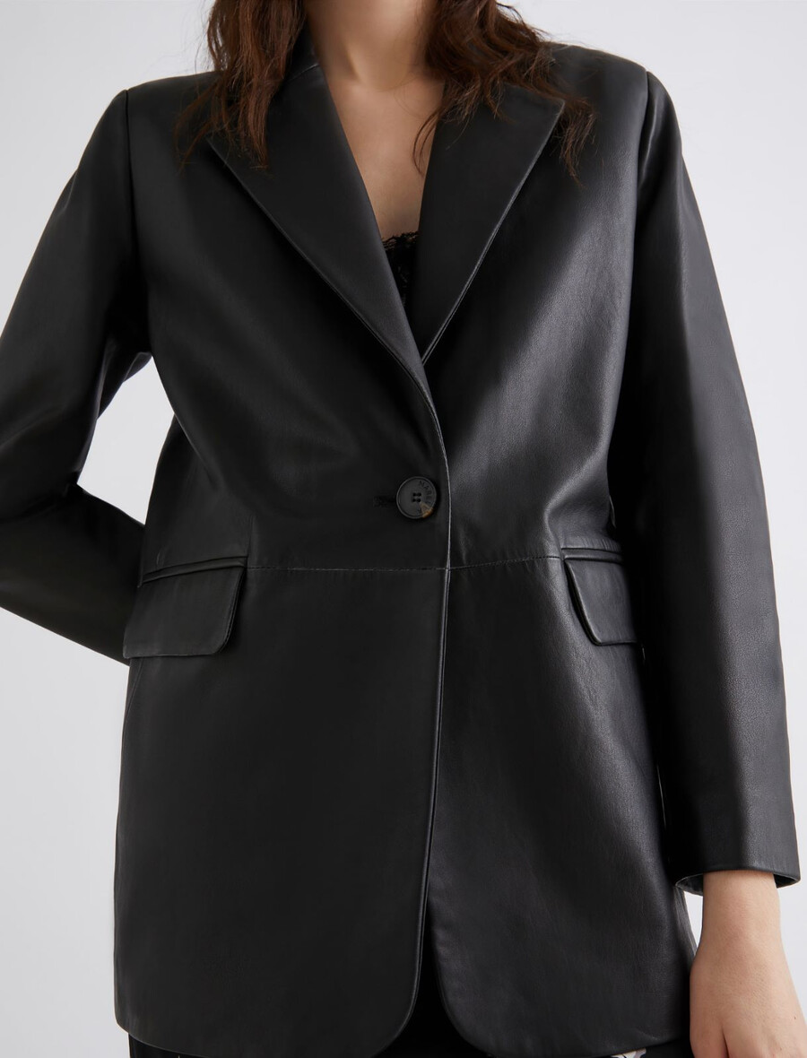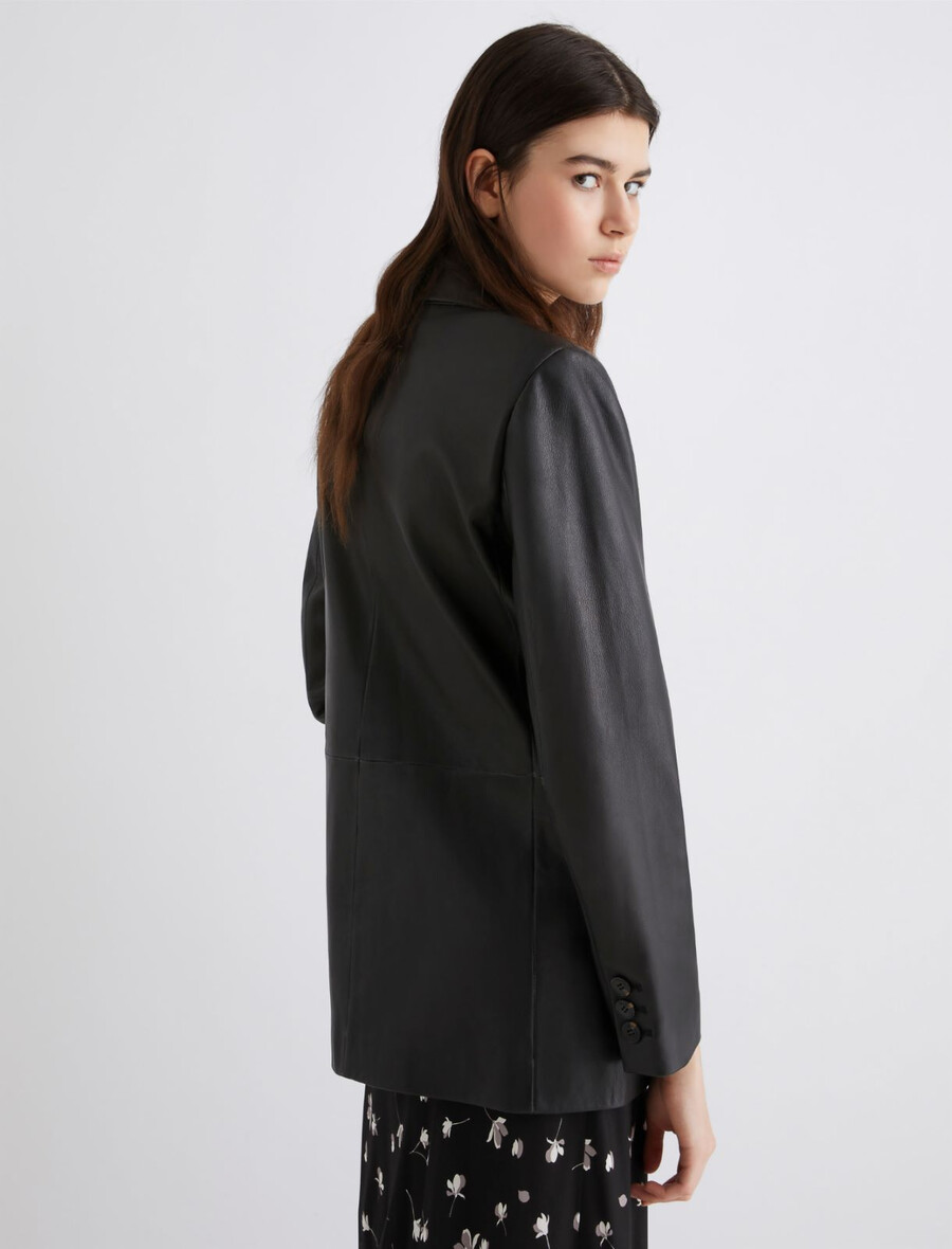 Najbolj urbani materiali z najbolj prefinjenim krojem: novi usnjeni blazer v vintage videzu se ponaša z reverji vzdolž izreza in zapenjanjem na en gumb. Poskusite ga kombinirati s potiskano obleko ali pa ga kombinirajte s kavbojkami in zgornjim delom, ki spominja na spodnje perilo, za presenetljiv rezultat v obeh primerih.