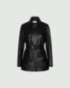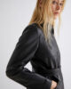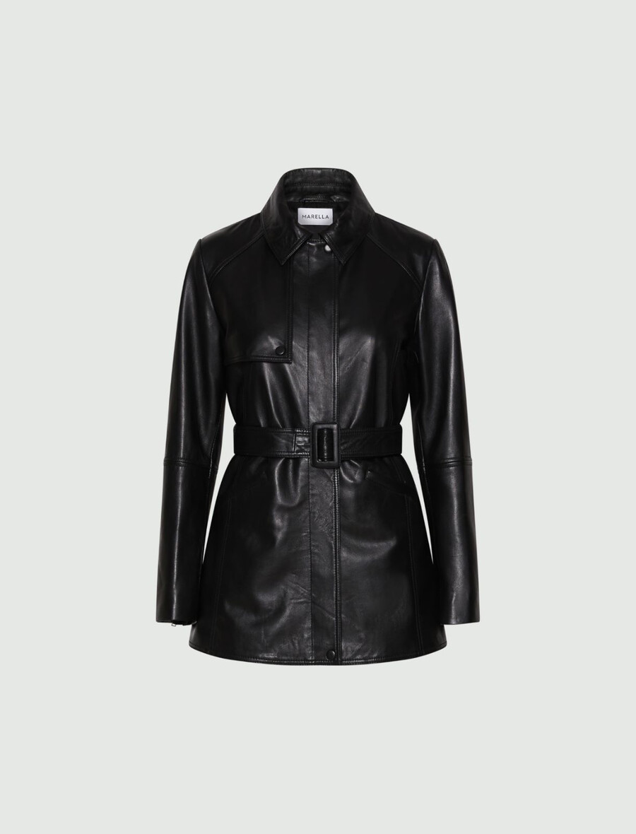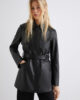 Ta usnjena debela jakna s srajčnim ovratnikom in snemljivim naramnim delom izžareva izrazito metropolitanski pridih. Za prilagodljivo prileganje jo stisnite v pas z ujemajočim se pasom.