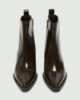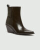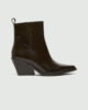 Škornji nad gležnji, navdihnjeni s kavbojskim slogom. Model se ponaša s koničastim prstom, široko peto in diagonalnim profilom. Štrleči rob doda drzen pridih.