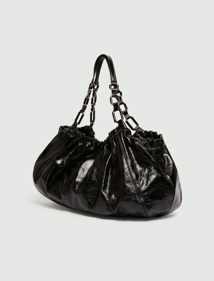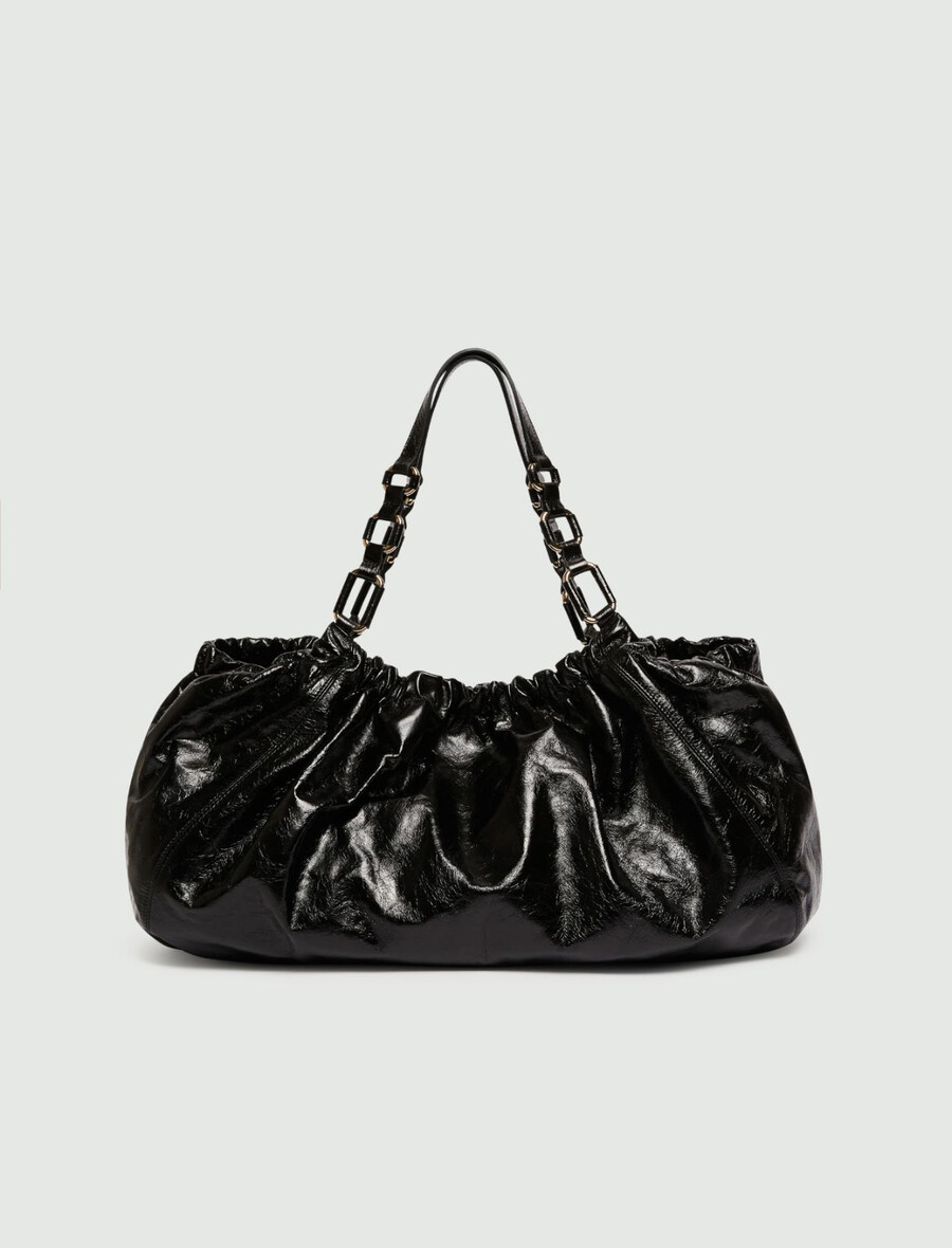 Nova velika nakupovalna torba je vsestranska, prostorna in pripravljena tudi na najbolj naporne dni z energičnim usnjem z videzom razpokanosti, prefinjenimi naborki in zlatimi zaključki.