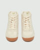 Visoke superge z oblazinjenim ovratnikom in zgornjim delom, ki ga poudarjajo kontrastni barvni vložki. Model nosite na proste dni s pletenimi športnimi hlačami ali širokimi hlačami.