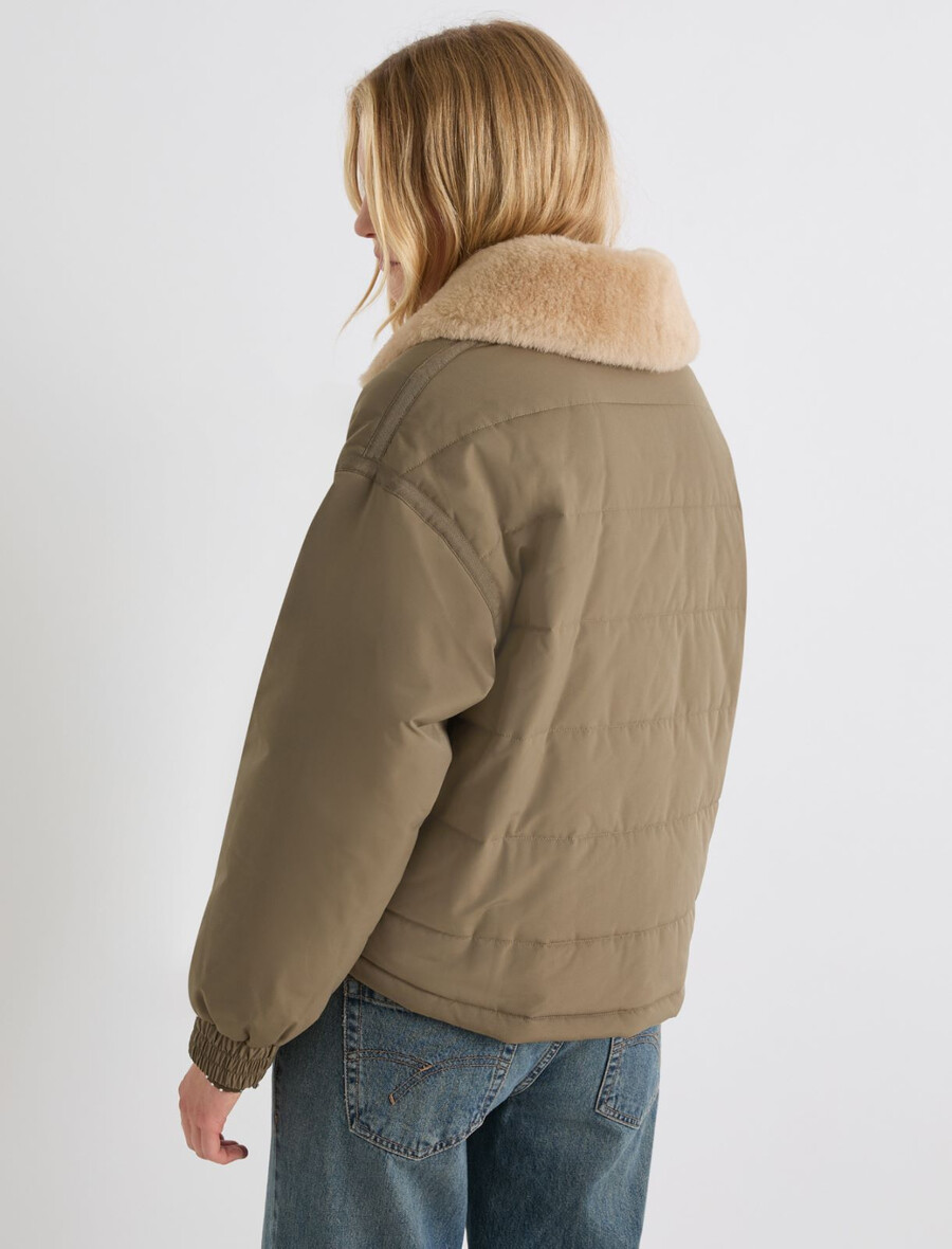 Ključna beseda je tekstura: nova prešita težka jakna osnovnega kroja najde glamur v puhastem ovratniku iz blaga in obrobah žepov. Popolna je za vaše proste dni in se bo dobro podala k vašim najljubšim kavbojkam, hkrati pa je dovolj vsestranska za bolj drzne kombinacije, ki vključujejo obleke, škornje in vezenje.