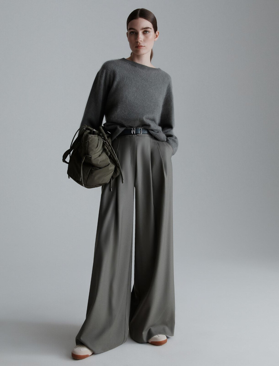 Ta mehak in topel pulover iz volne in kašmirja se ponaša z valovitim videzom, ki poudarja zapeljiv videz modela. Ta nepogrešljivi kos se lahko kombinira s širokimi hlačami ali vašimi najljubšimi kavbojkami.