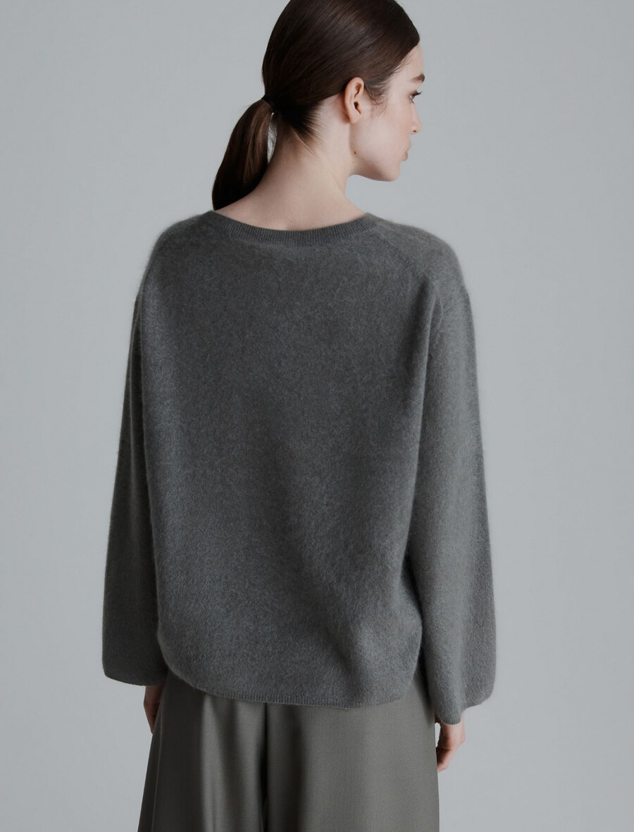 - Pulover iz volne z videzom dlake in kašmirske preje