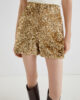 Te kratke hlače iz džersija z zlatimi bleščicami po celotni površini so najbolj glamurozen kos kolekcije. Bleščeče in ohlapne v bokih: ta model je primeren za nepričakovane kombinacije, kot je kašmirski pulover ali kavbojski top.