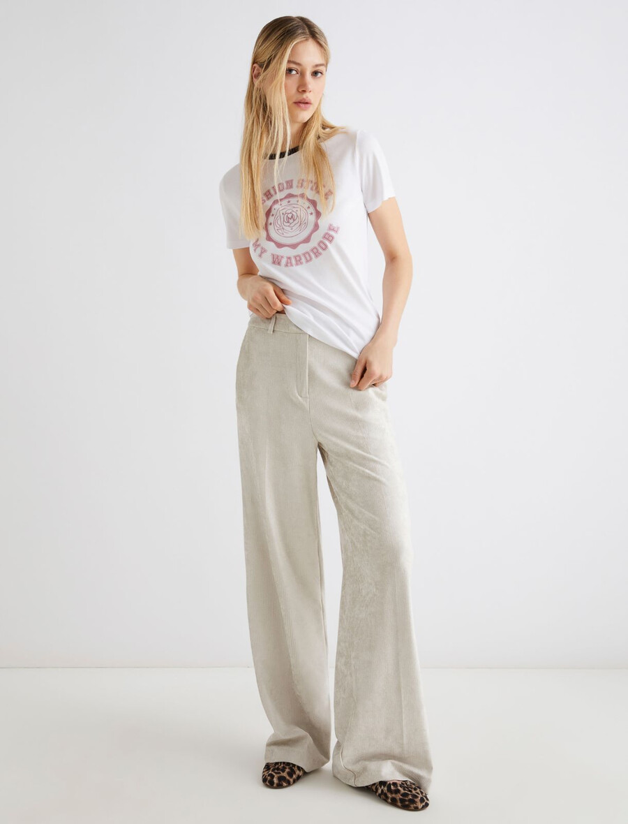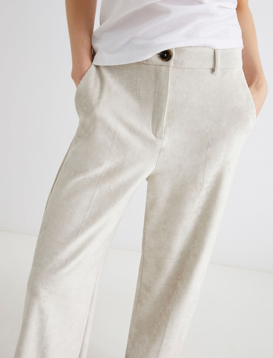 Te žametne hlače z videzom 70-ih so spet v središču pozornosti zaradi svoje vsestranskosti in neformalnega občutka tkanine. Izdelane iz viskoze za poseben sijaj.