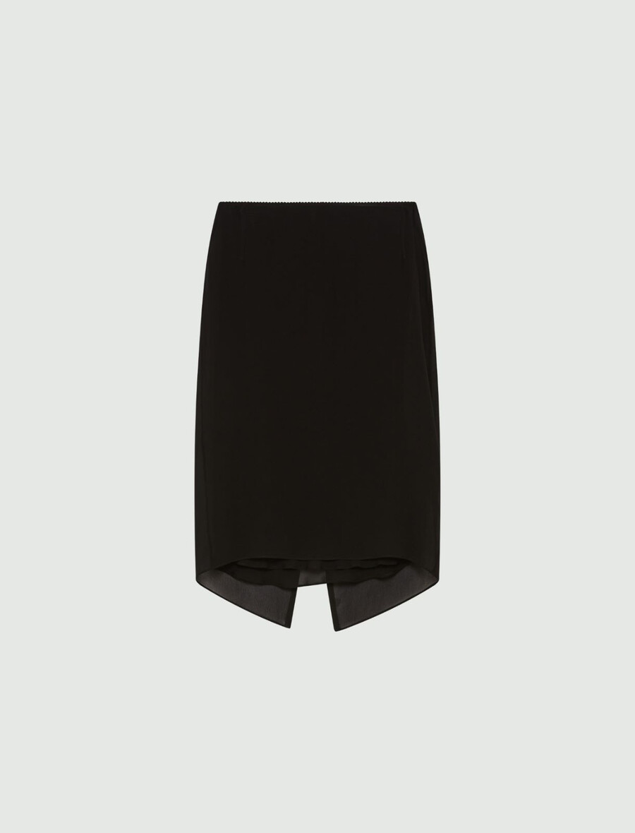Ultra čutna tkanina iz žoržeta se sreča z osnovnim krojem krila. Prozoren učinek je izravnan z ujemajočim se spodnjim krilom, ki združuje funkcionalnost z vpadljivimi detajli.