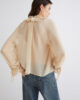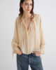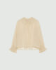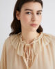 Srajca iz čistega svilenega žoržeta z mehkim dolgim volančkom, ki poudari gibanje, in romantičnim pridihom. Poskusite jo kombinirati s kavbojkami in usnjeno jakno za igro z ultra kul kontrasti.